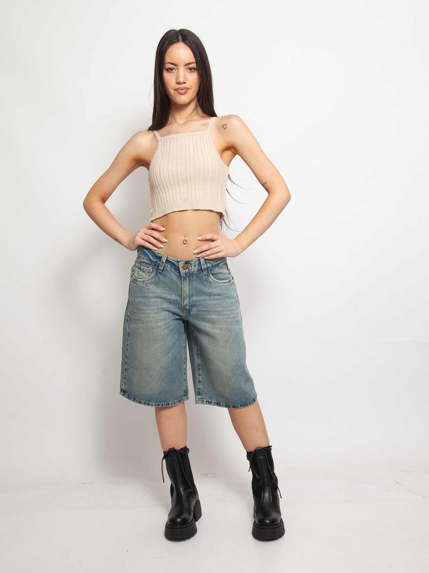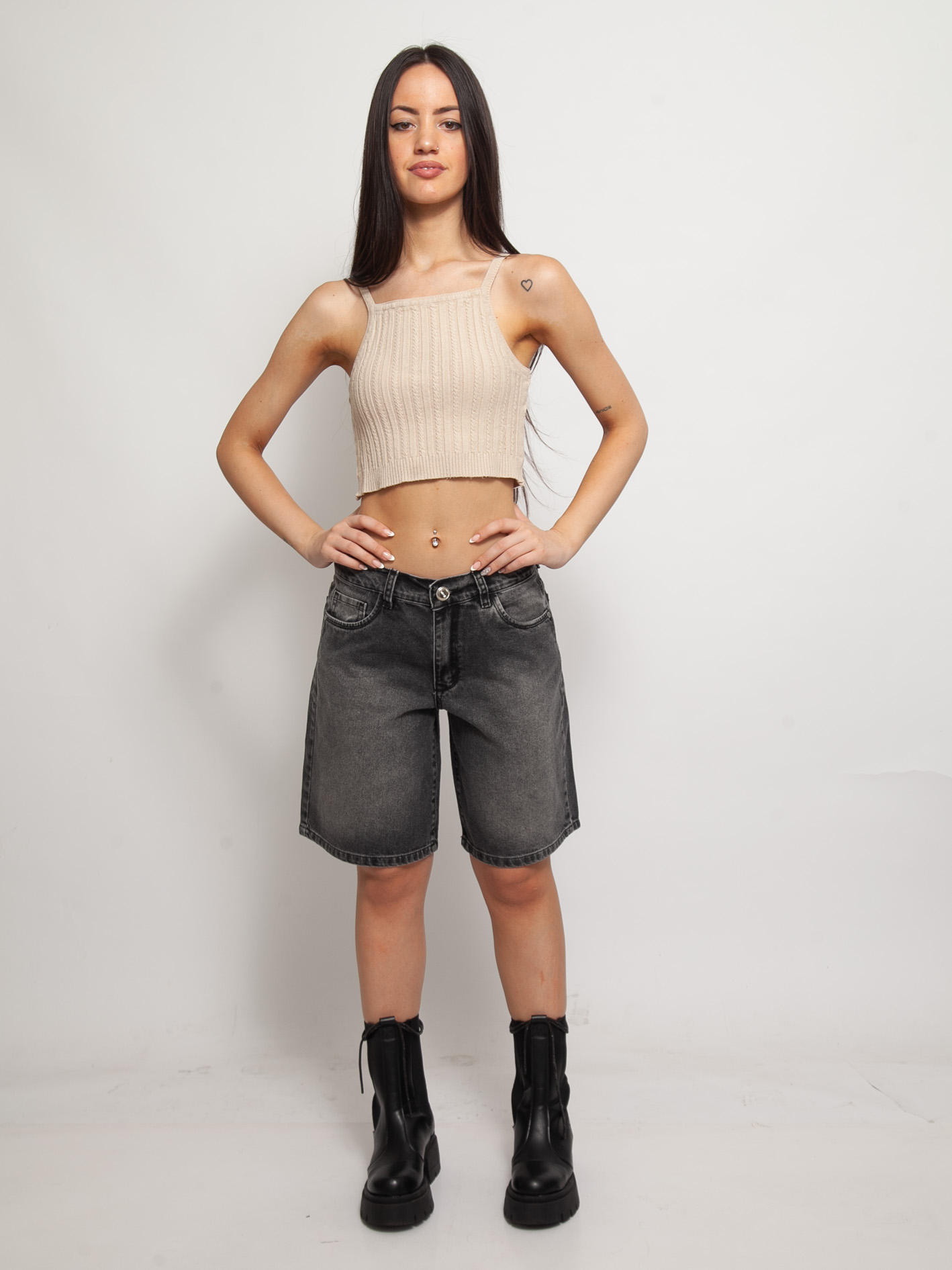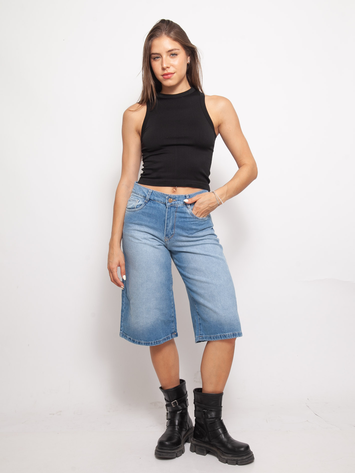 ART B-303 BERMUDA MOM NEGRO GASTADO