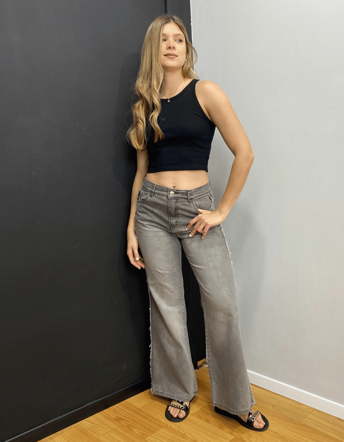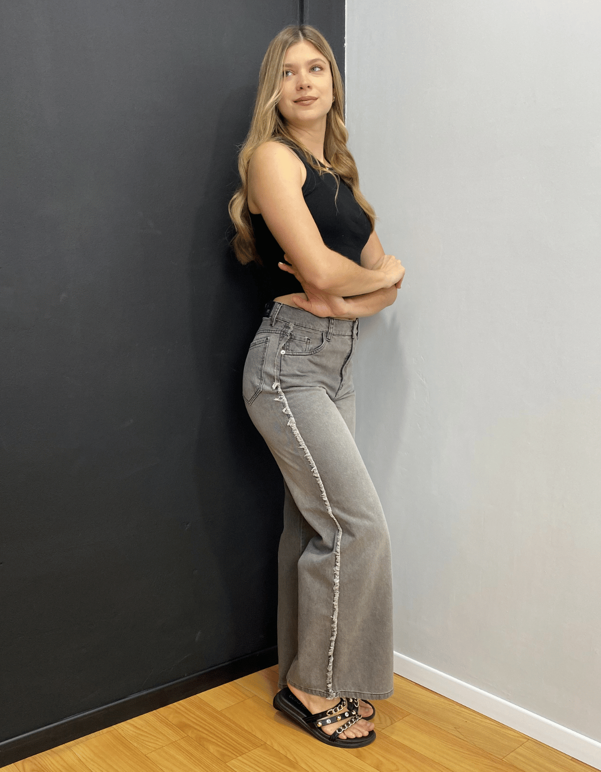 ART 708 WIDE LEG GRIS CON DEFECADO LATERAL