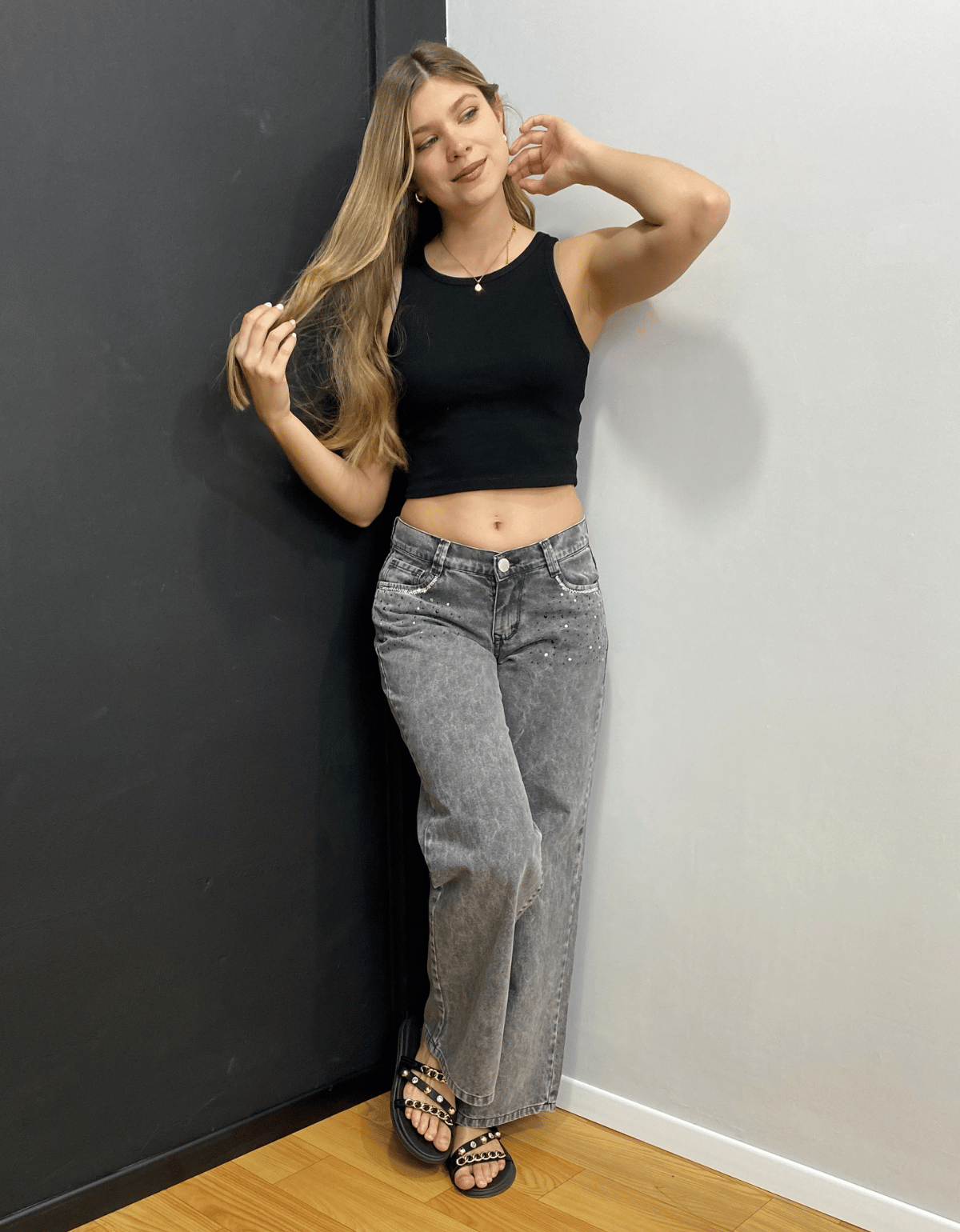 ART 711 WIDE LEG FLARE GRIS CON STRASS