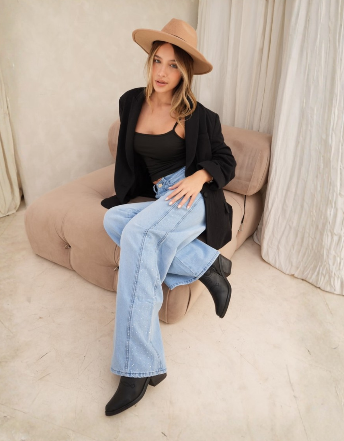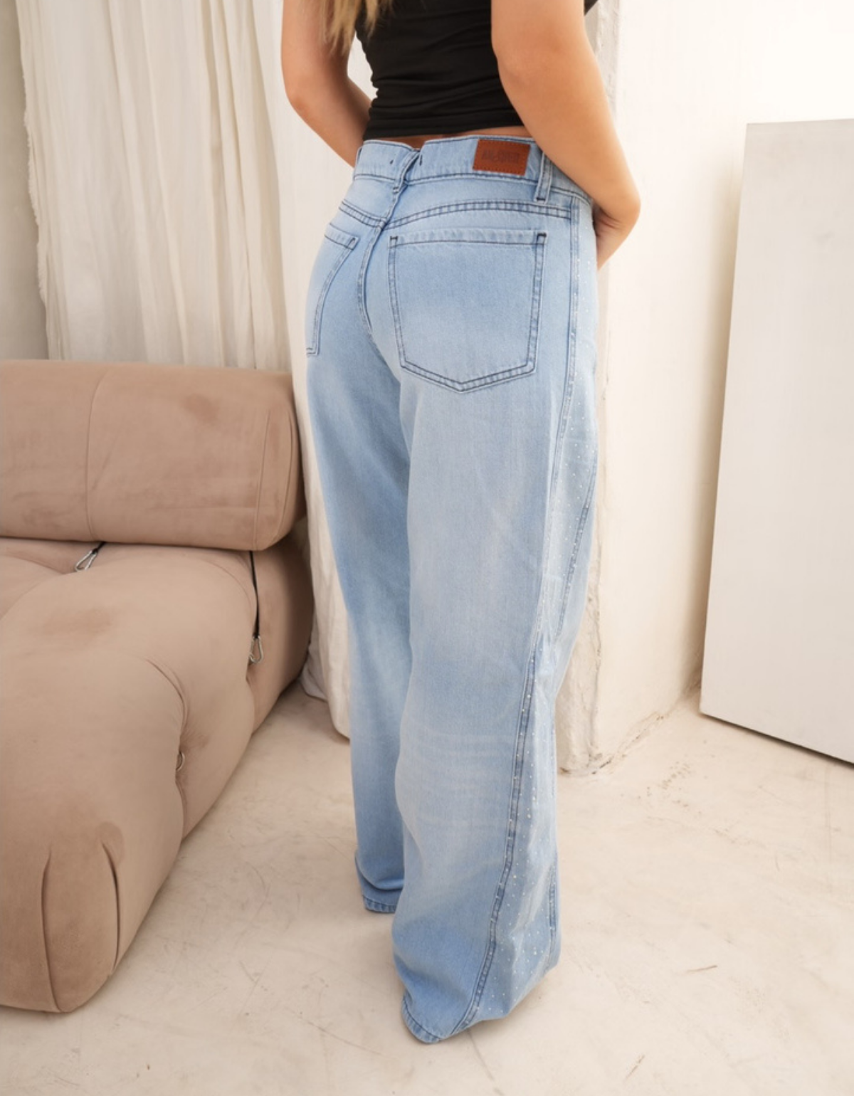 ART 760 WIDE LEG CELESTE RECORTES CON STRASS